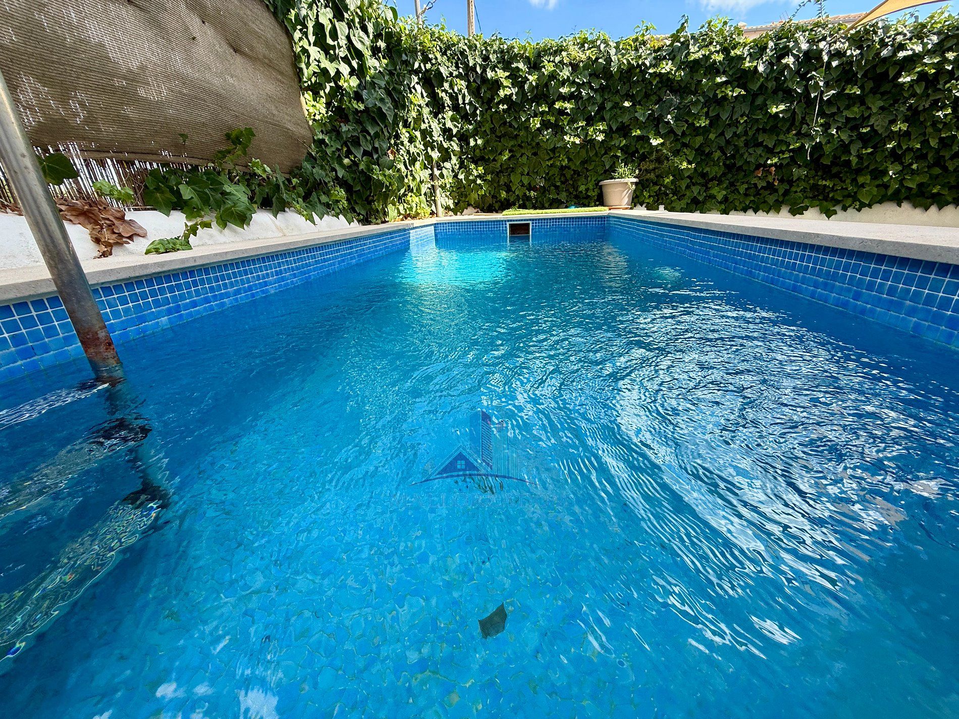 En Sa Ràpita se encuentra este acogedor chalet unifamiliar que combina amplitud, funcionalidad y encanto mediterráneo. En la planta baja dispone de un dormitorio principal con baño en suite y vestidor, un luminoso salón con chimenea que conecta con la zona exterior, una terraza con barbacoa de obra y piscina rodeada de césped artificial, además de un espacio cubierto para aparcar el coche. En esta misma planta hay también un baño adicional y un pequeño cuarto versátil que puede destinarse tanto a despacho como a sala de plancha.