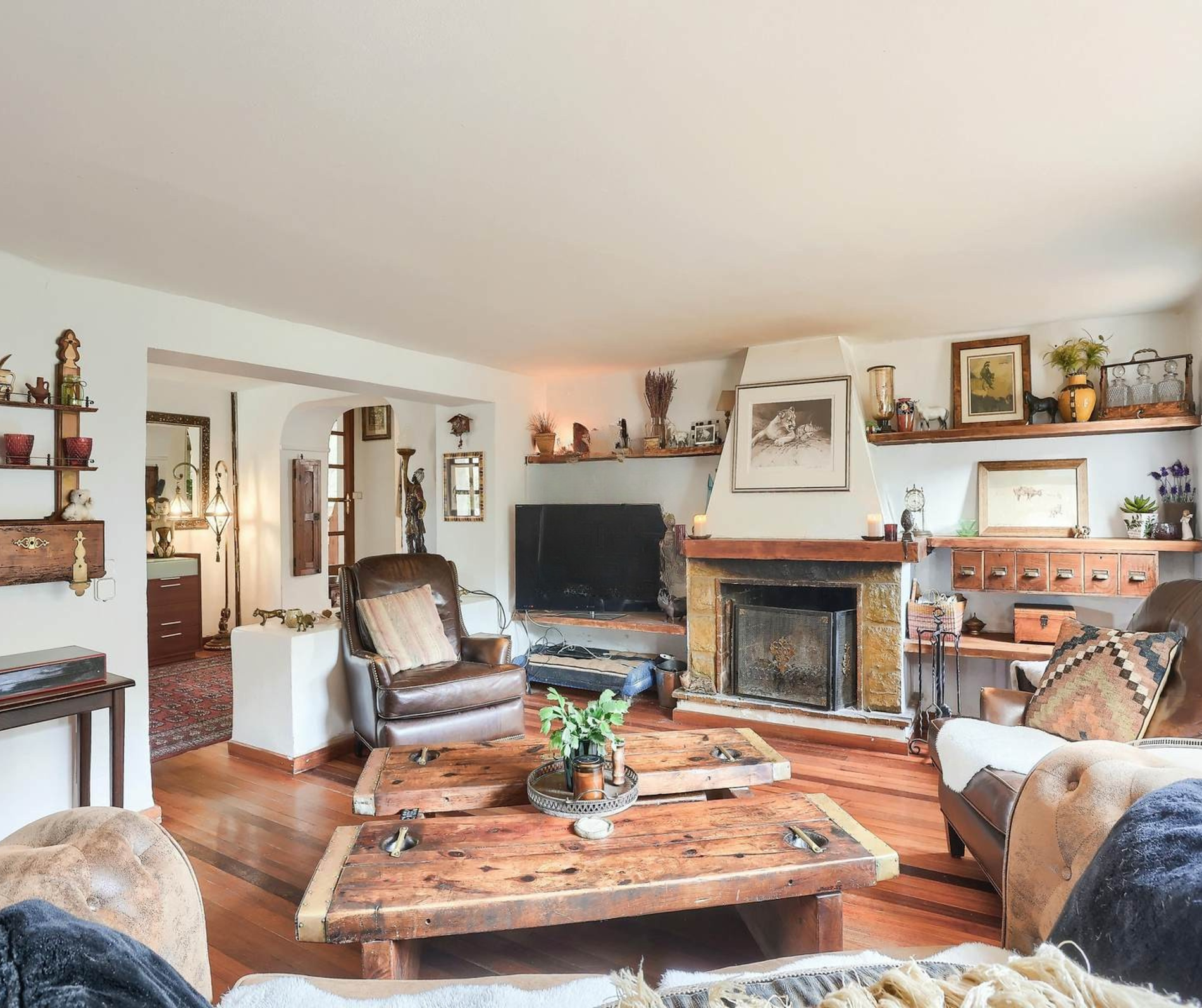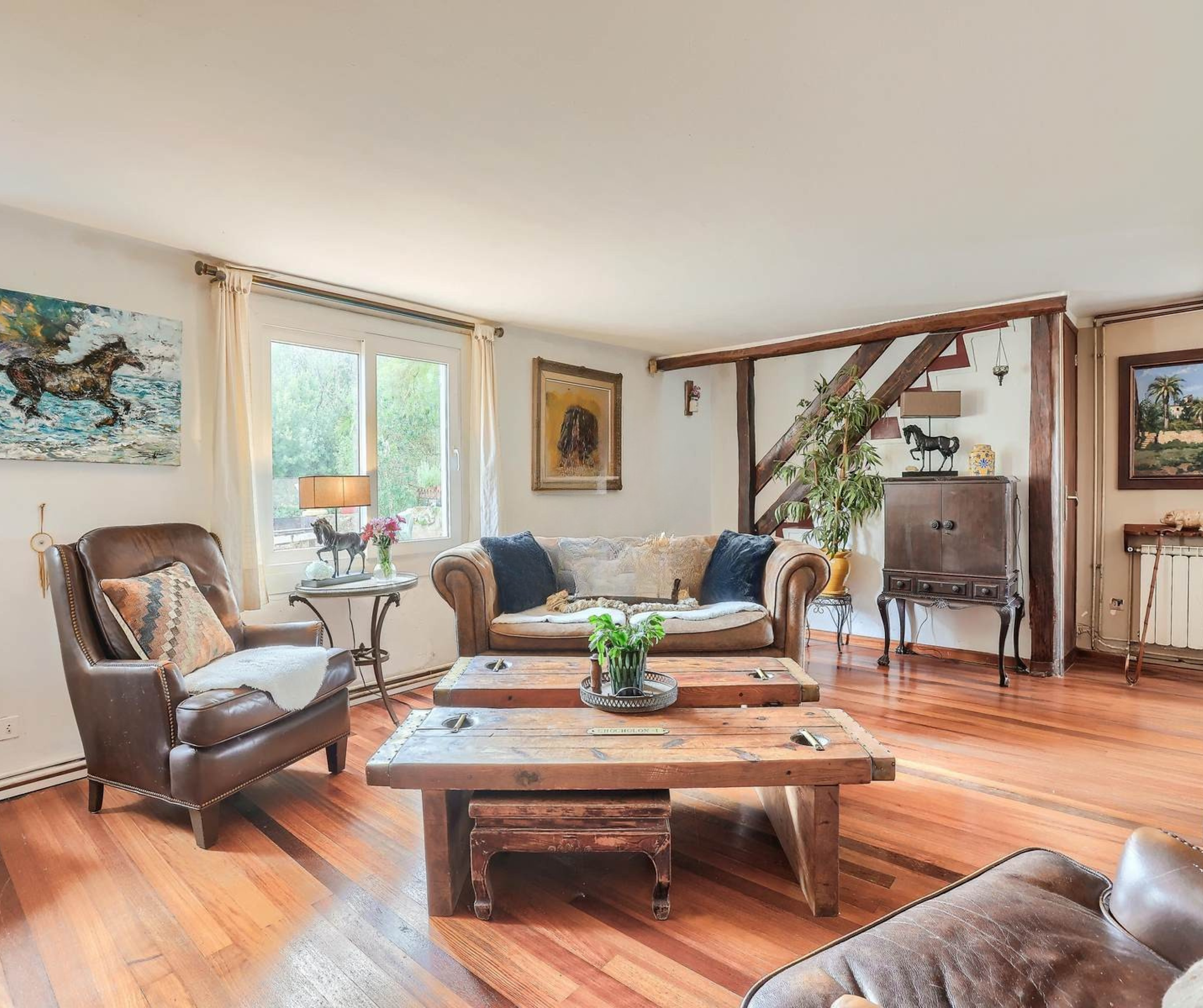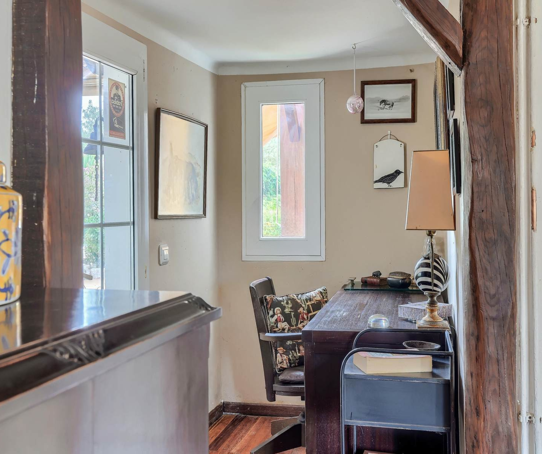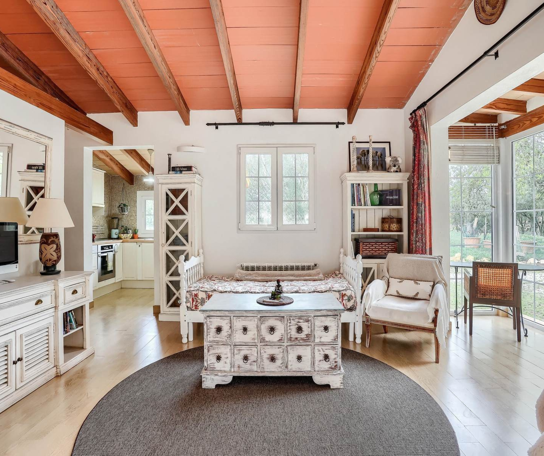 La casa principal, construida en el clásico estilo mallorquín, destaca por sus arcos, muros de piedra y varias chimeneas que aportan calidez y carácter. Sus amplios espacios abiertos se conectan de forma natural con terrazas y jardines, favoreciendo una vida interior–exterior sin fronteras. La finca dispone de cocina abierta totalmente equipada, varios salones, terrazas con vistas, aire acondicionado, calefacción, ventanas de doble acristalamiento y un diseño que invita al confort durante todo el año.