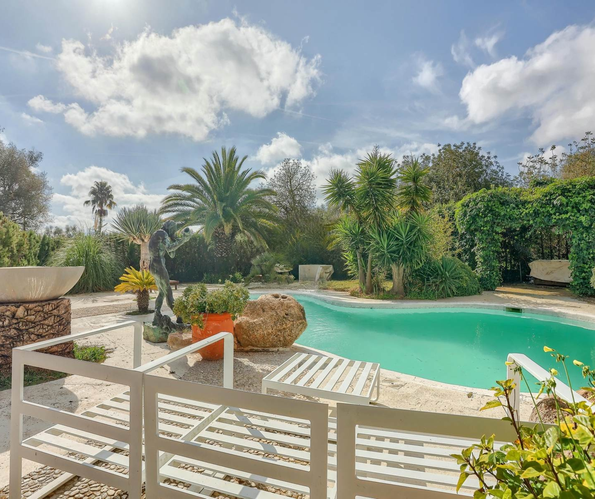 La propiedad ofrece una residencia principal de 5 dormitorios, varias casas de invitados, piscina, jardines y amplias zonas de descanso al aire libre.