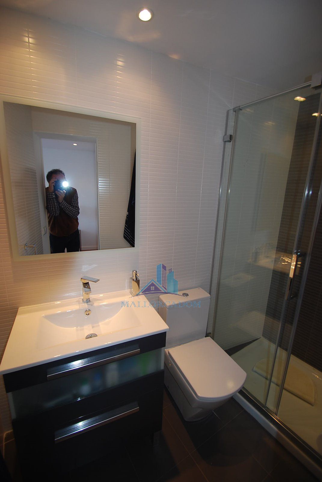 Desde la cocina, bajamos unas escaleras a la zona de noche, donde se encuentran dos dormitorios dobles y dos baños, uno de ellos en suite.