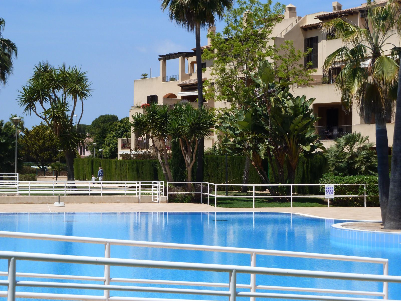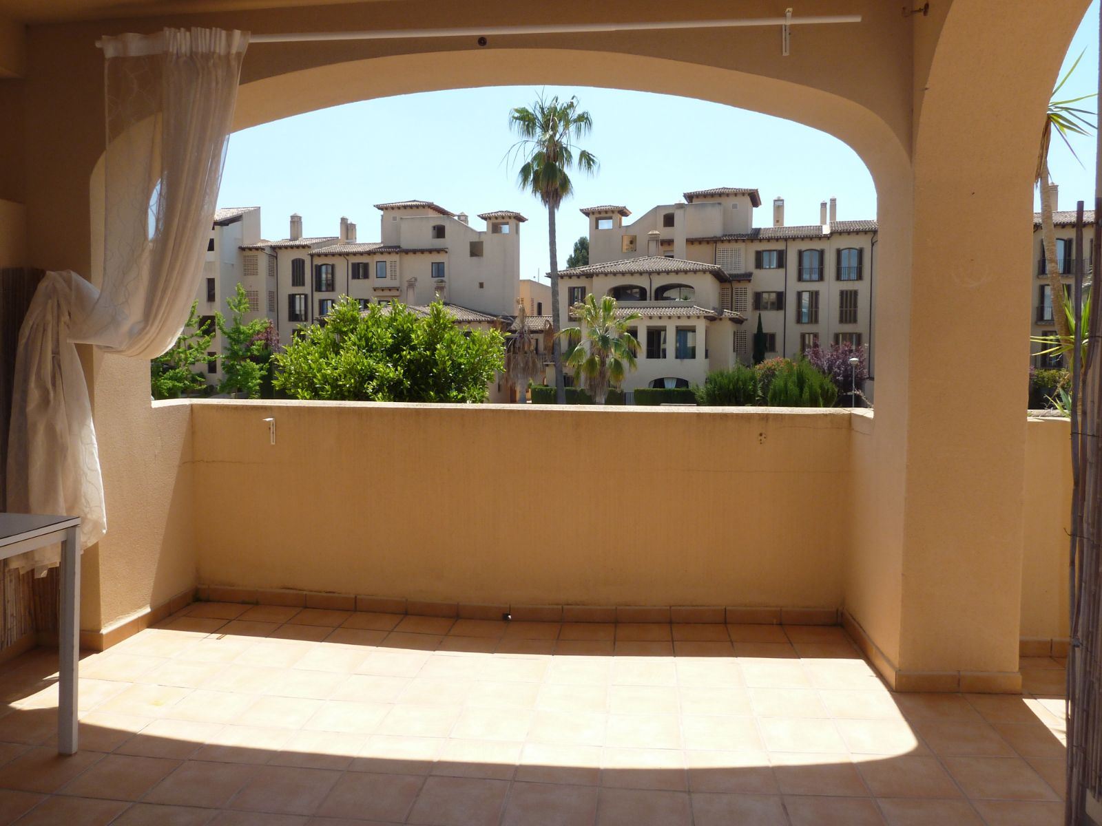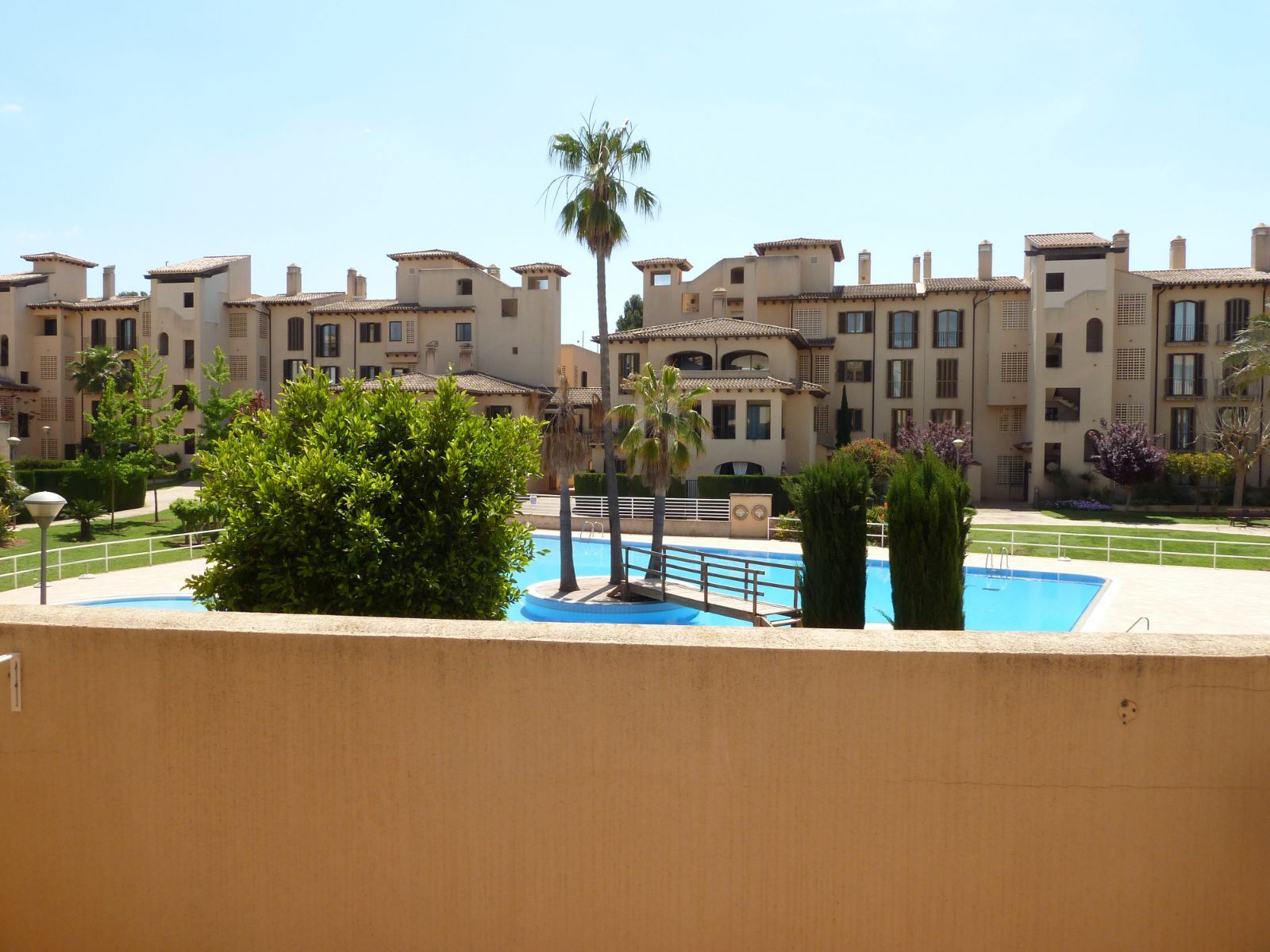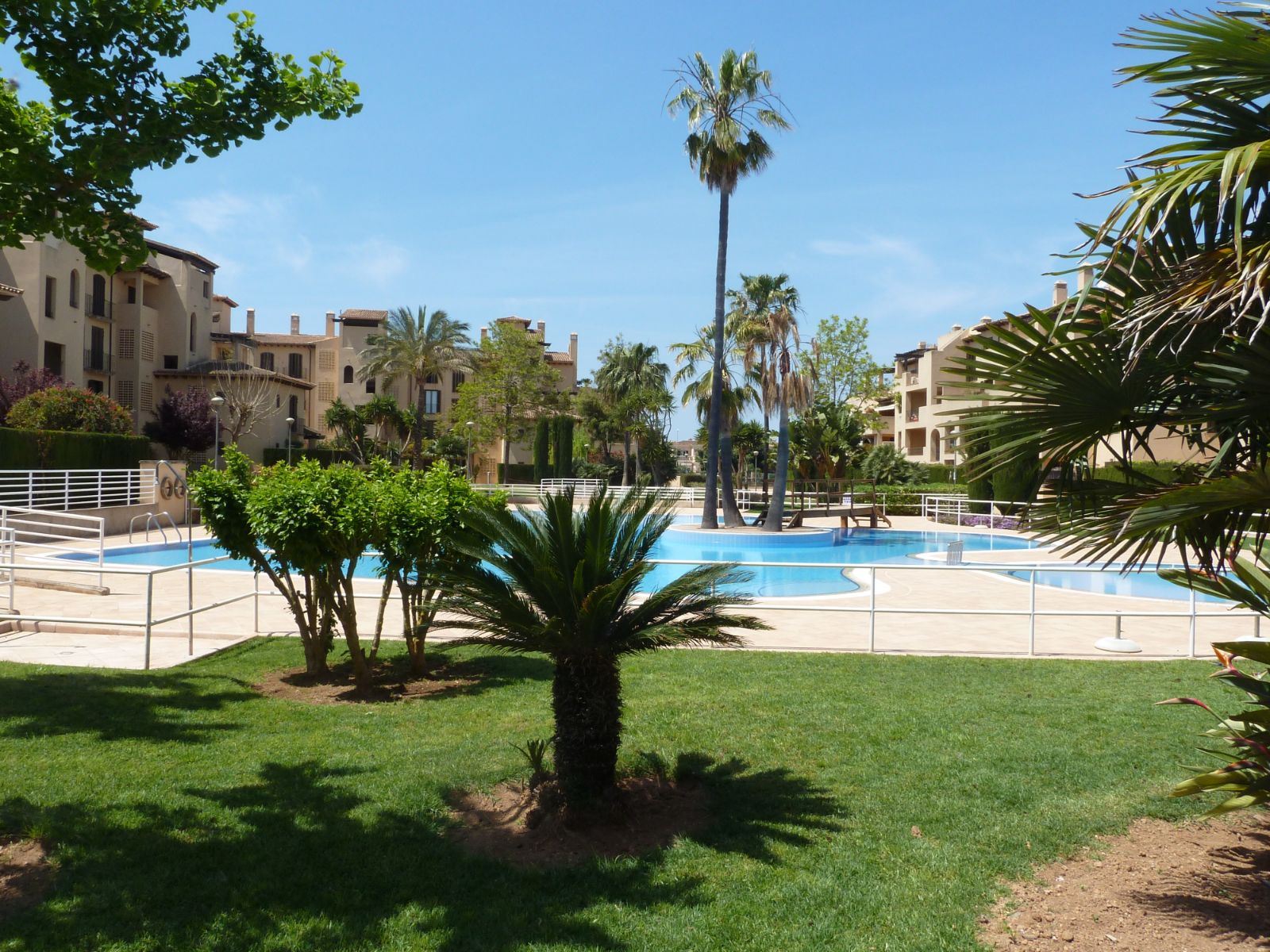 En un barrio tranquilo y residencial, en una urbanización exclusiva de Puig den Ros, a poca distancia de todo tipo de comercios, colegios, zonas verdes, playas, campo de golf encontramos este piso de tres habitaciones, en un complejo con piscinas, jardines comunitarios y pista de padel propia.