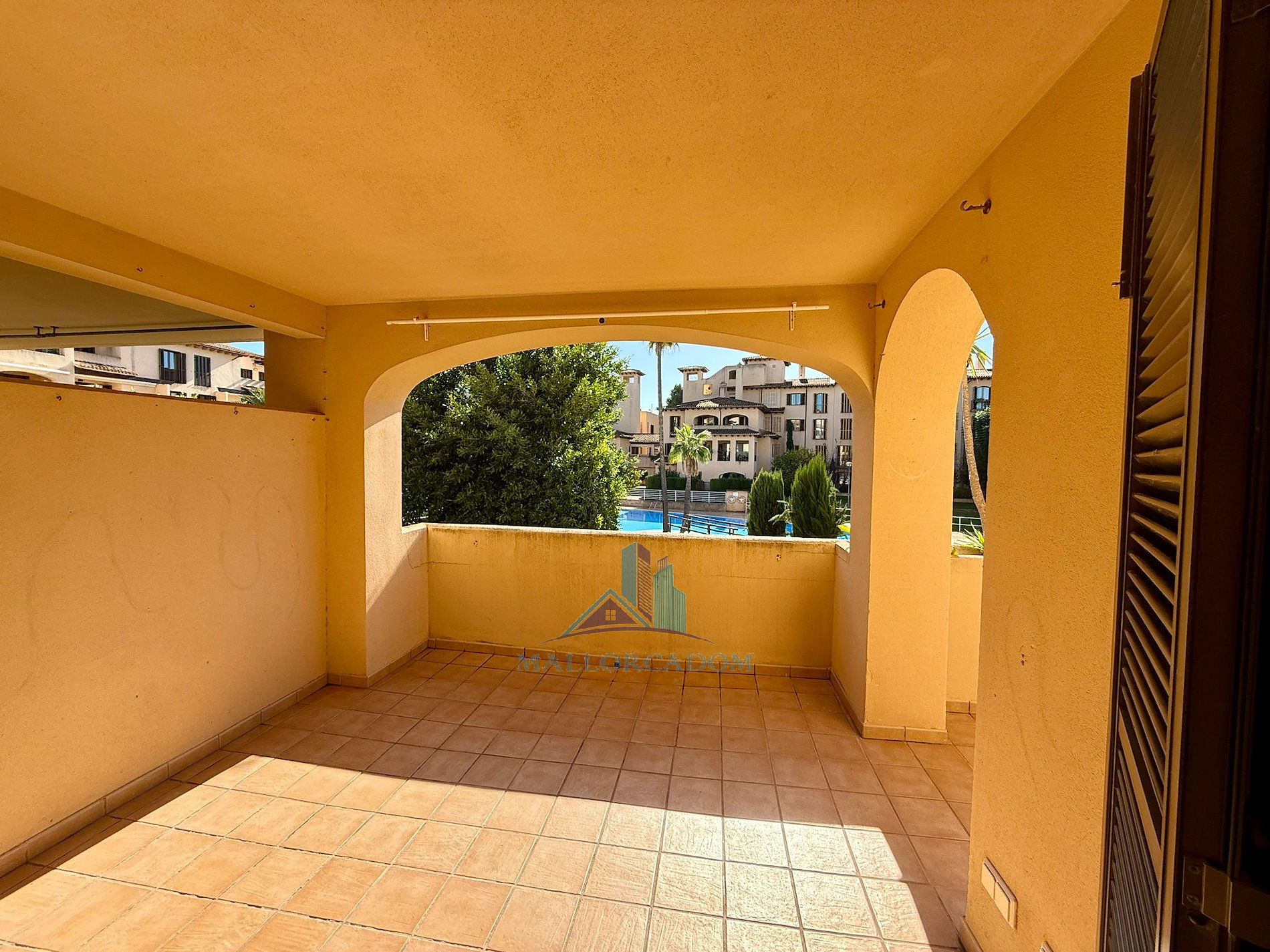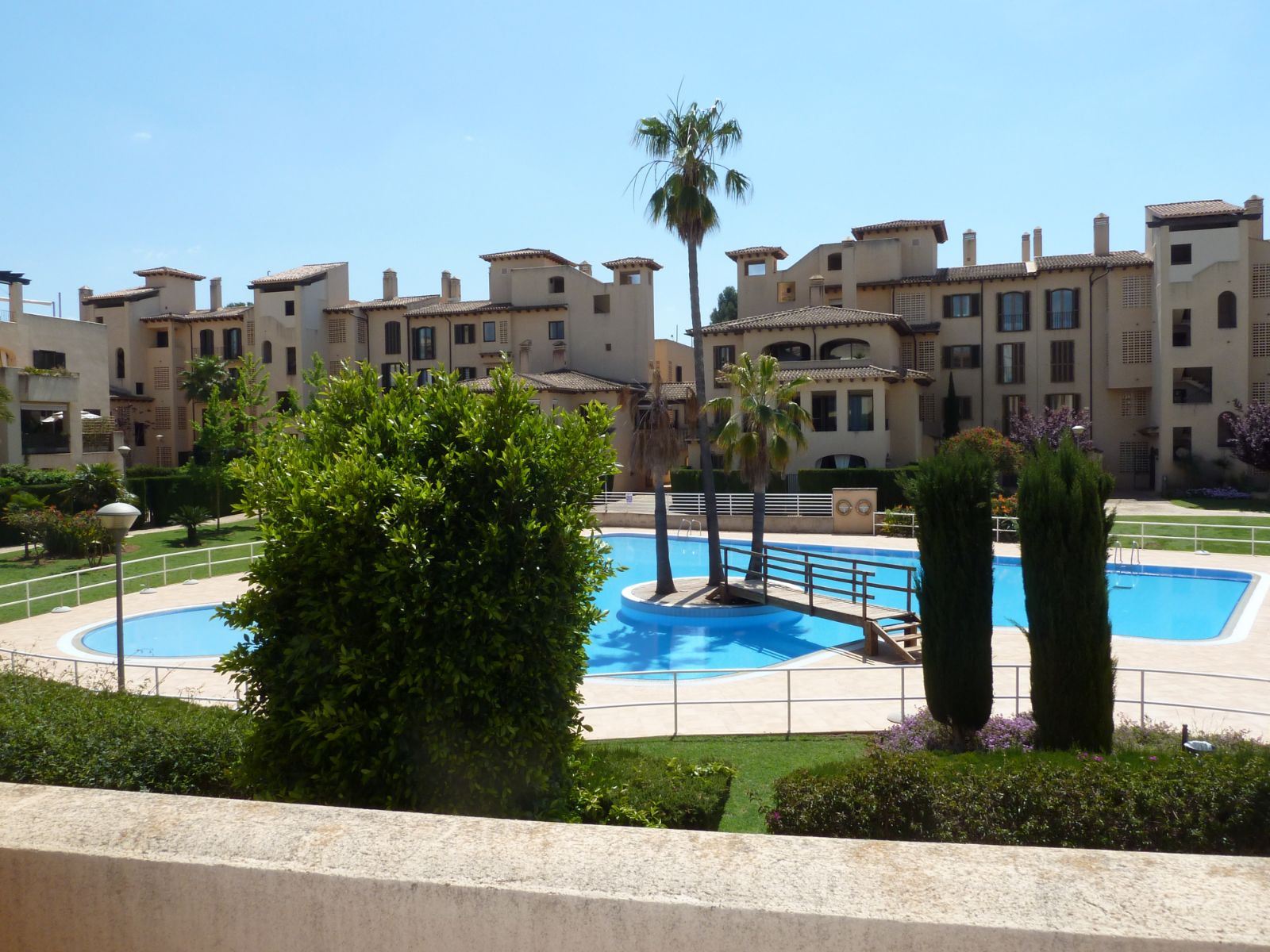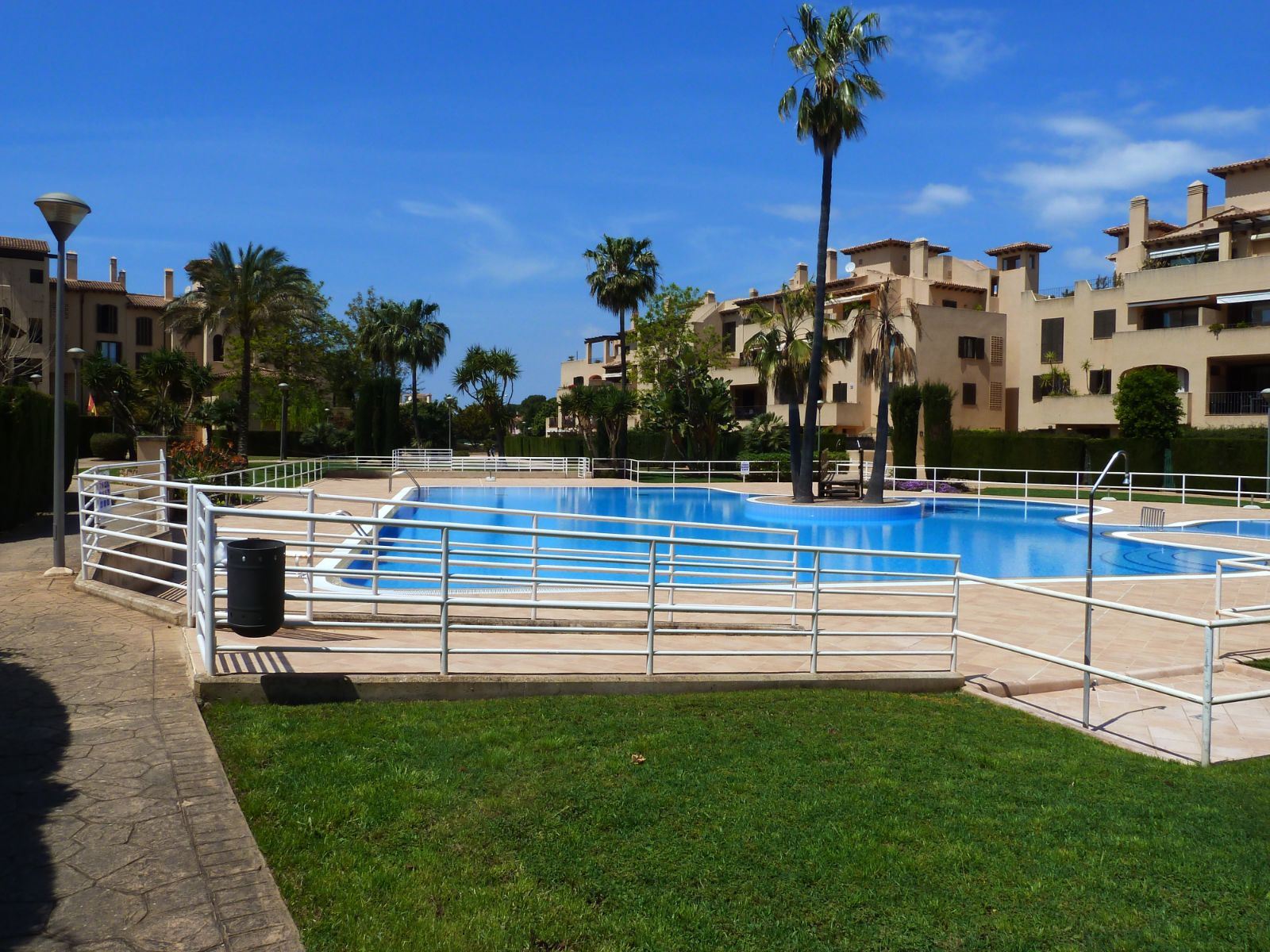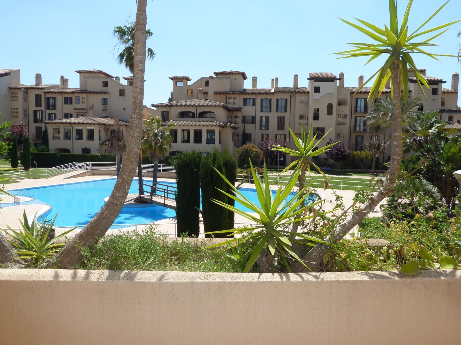 En un barrio tranquilo y residencial, en una urbanización exclusiva de Puig den Ros, a poca distancia de todo tipo de comercios, colegios, zonas verdes, playas, campo de golf encontramos este piso de tres habitaciones, en un complejo con piscinas, jardines comunitarios y pista de padel propia.