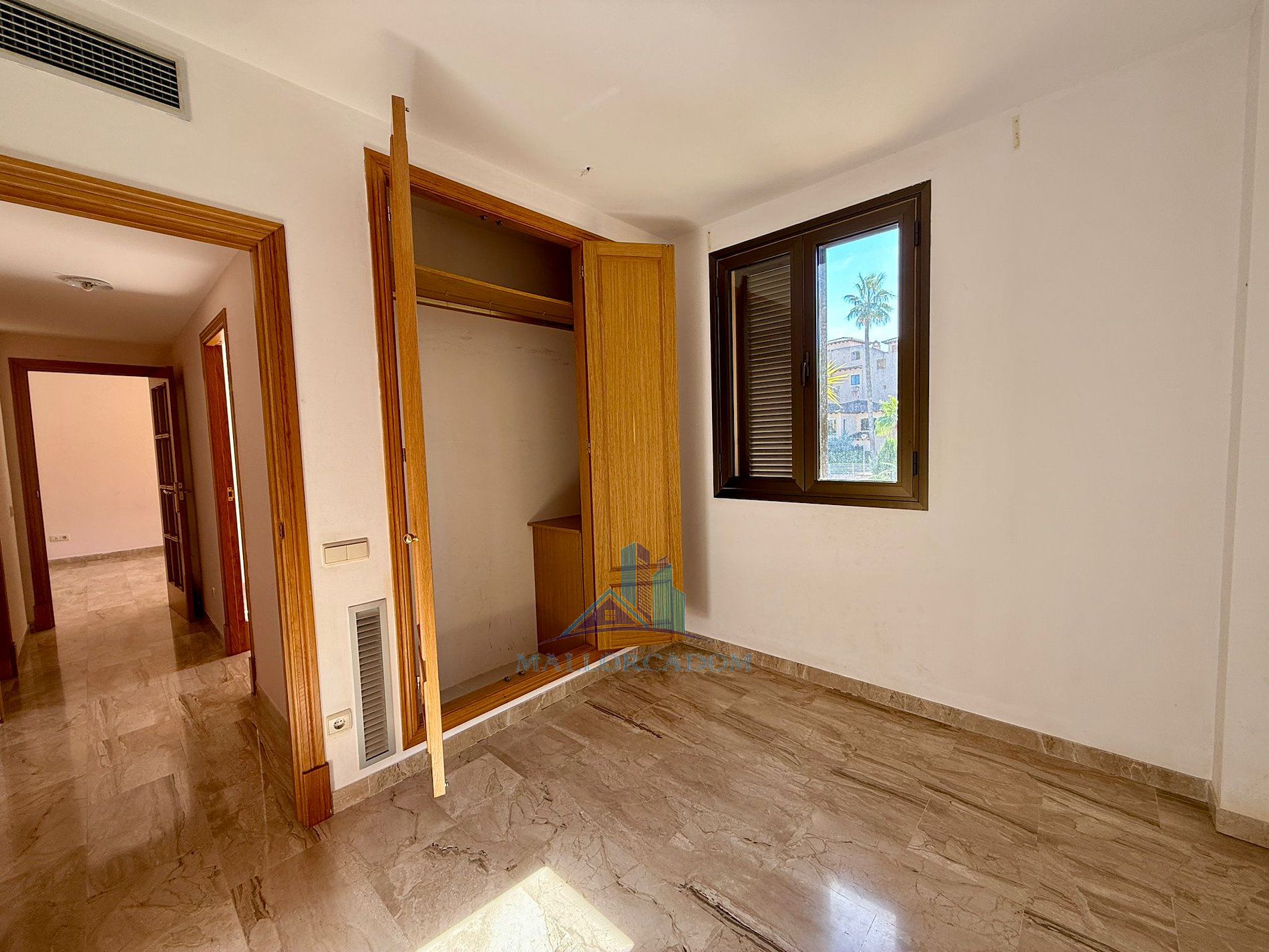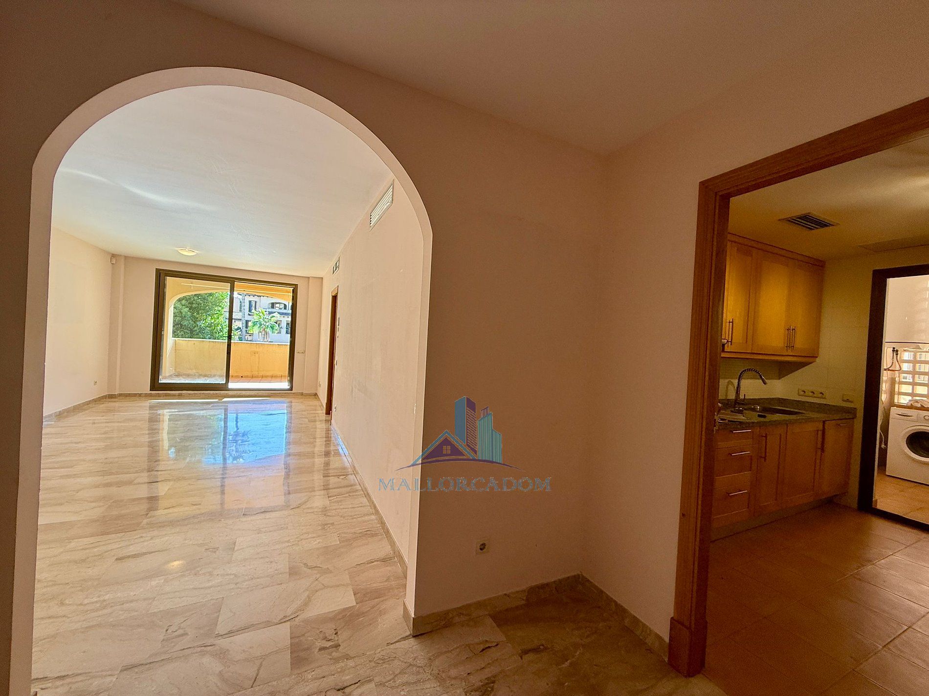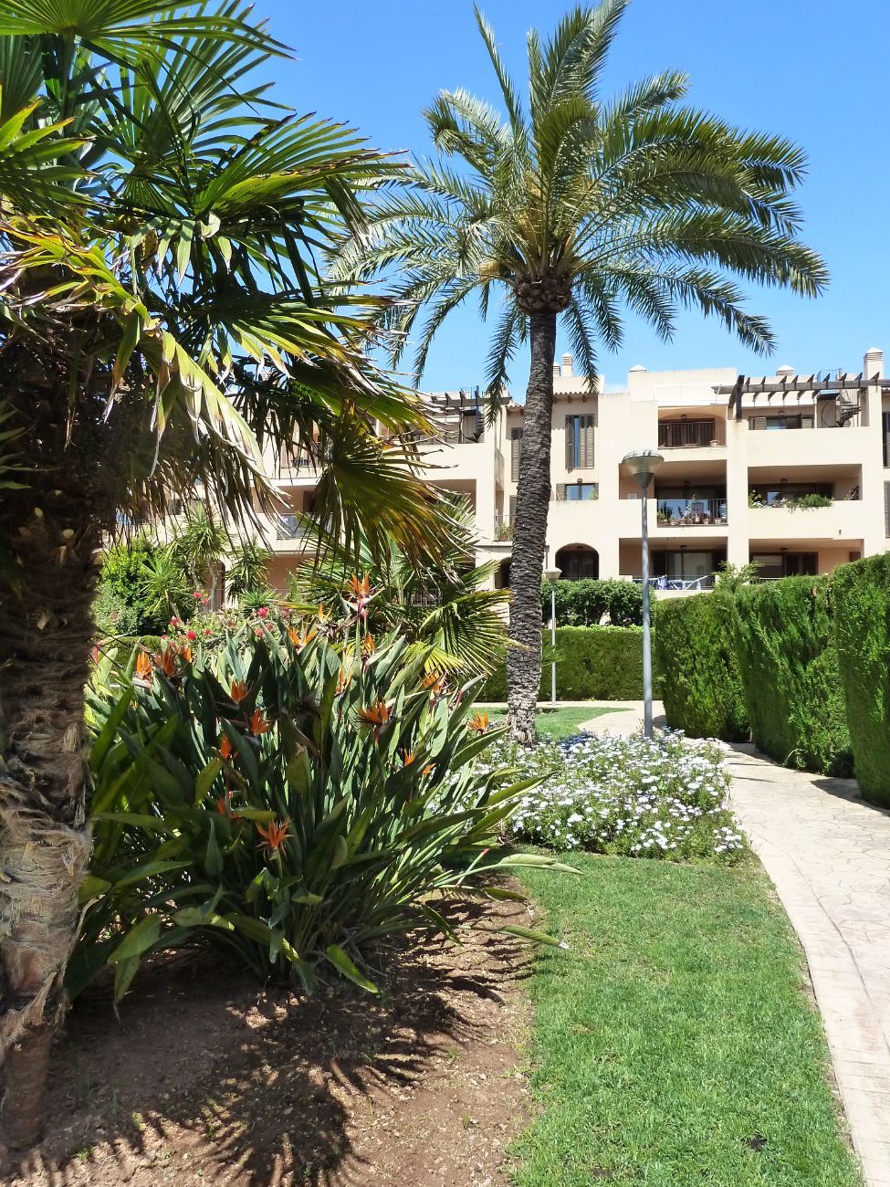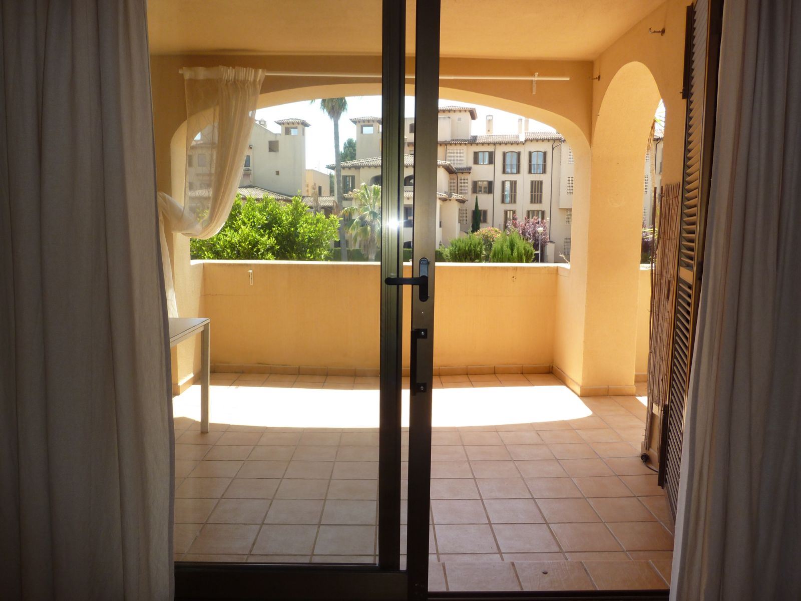 En un barrio tranquilo y residencial, en una urbanización exclusiva de Puig den Ros, a poca distancia de todo tipo de comercios, colegios, zonas verdes, playas, campo de golf encontramos este piso de tres habitaciones, en un complejo con piscinas, jardines comunitarios y pista de padel propia.