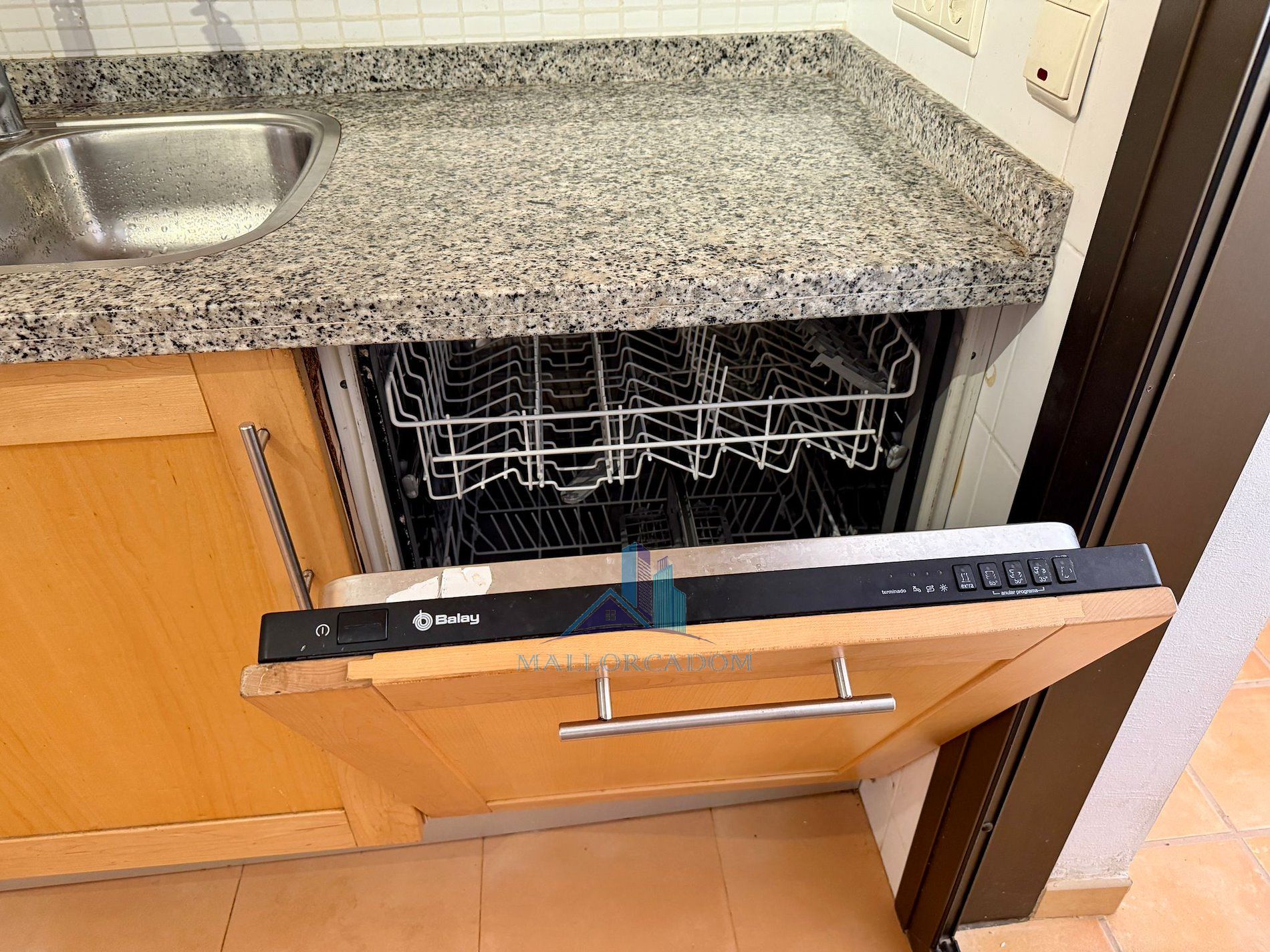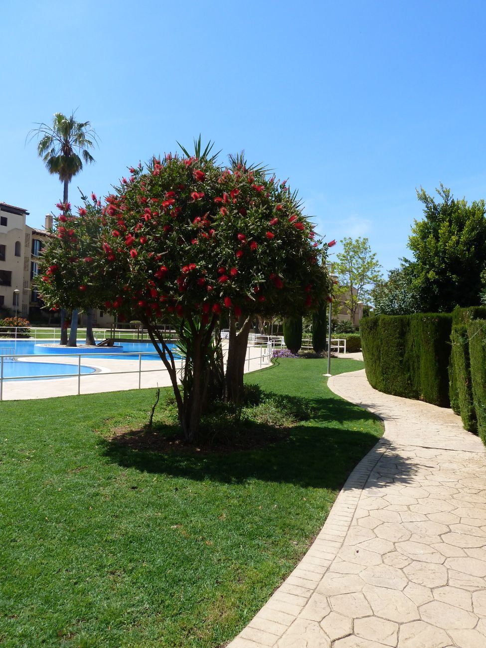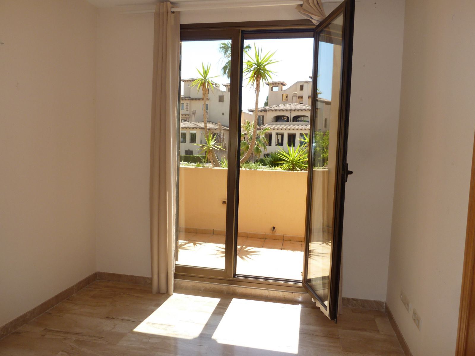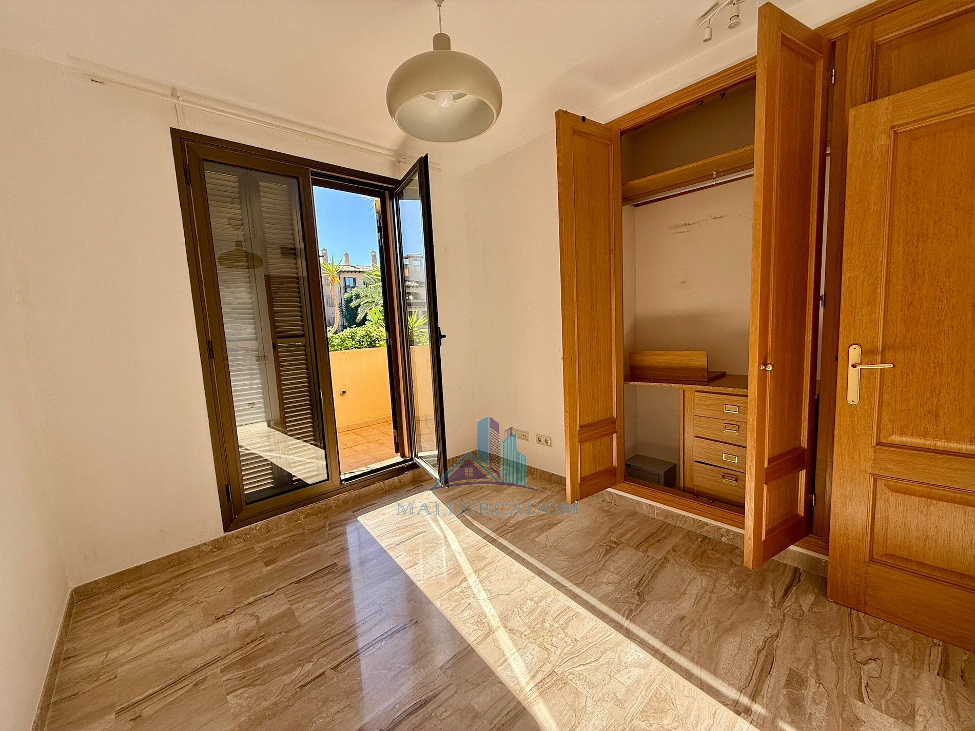 En un barrio tranquilo y residencial, en una urbanización exclusiva de Puig den Ros, a poca distancia de todo tipo de comercios, colegios, zonas verdes, playas, campo de golf encontramos este piso de tres habitaciones, en un complejo con piscinas, jardines comunitarios y pista de padel propia.